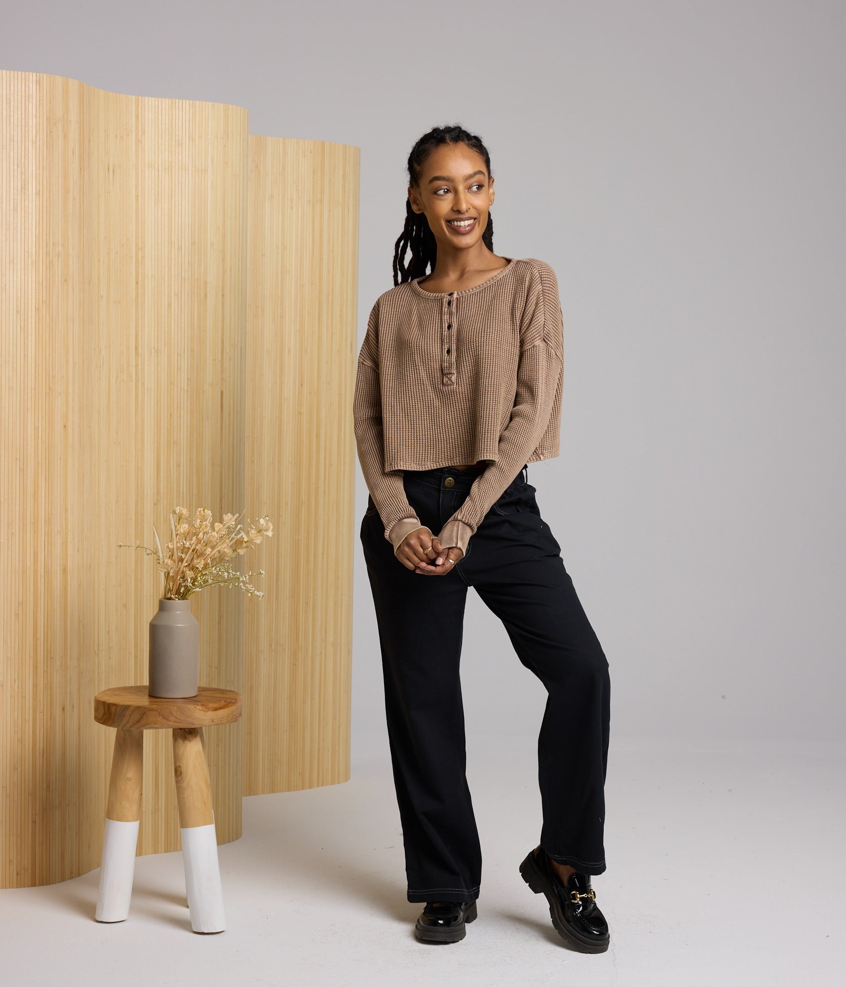 A cute little crop top with long sleeves - perfect for when your wrists are cold, but your belly button is sweating.