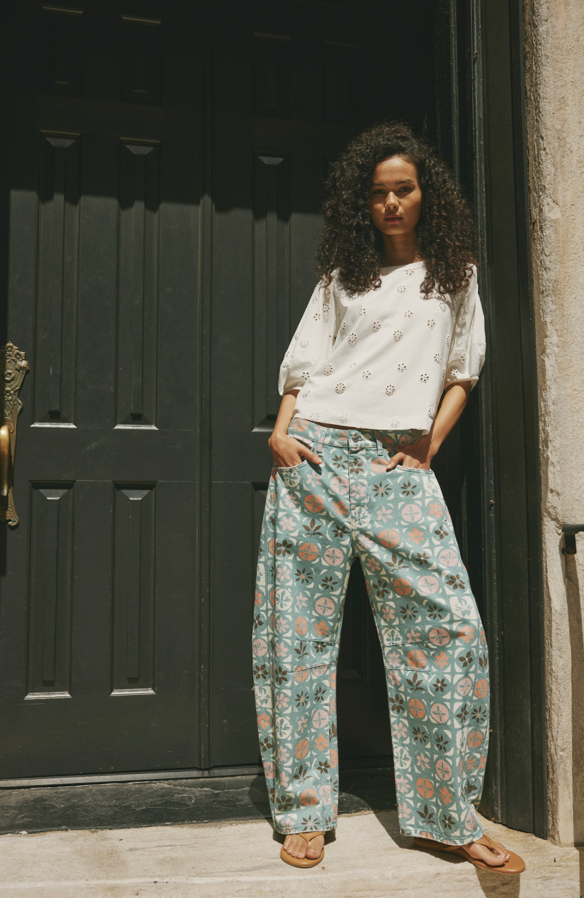 This playful pair of jeans is a fun silhouette to add to your denim collection — we recommend ordering your true size for a traditional fit, or sizing up for a low-slung, baggy style.