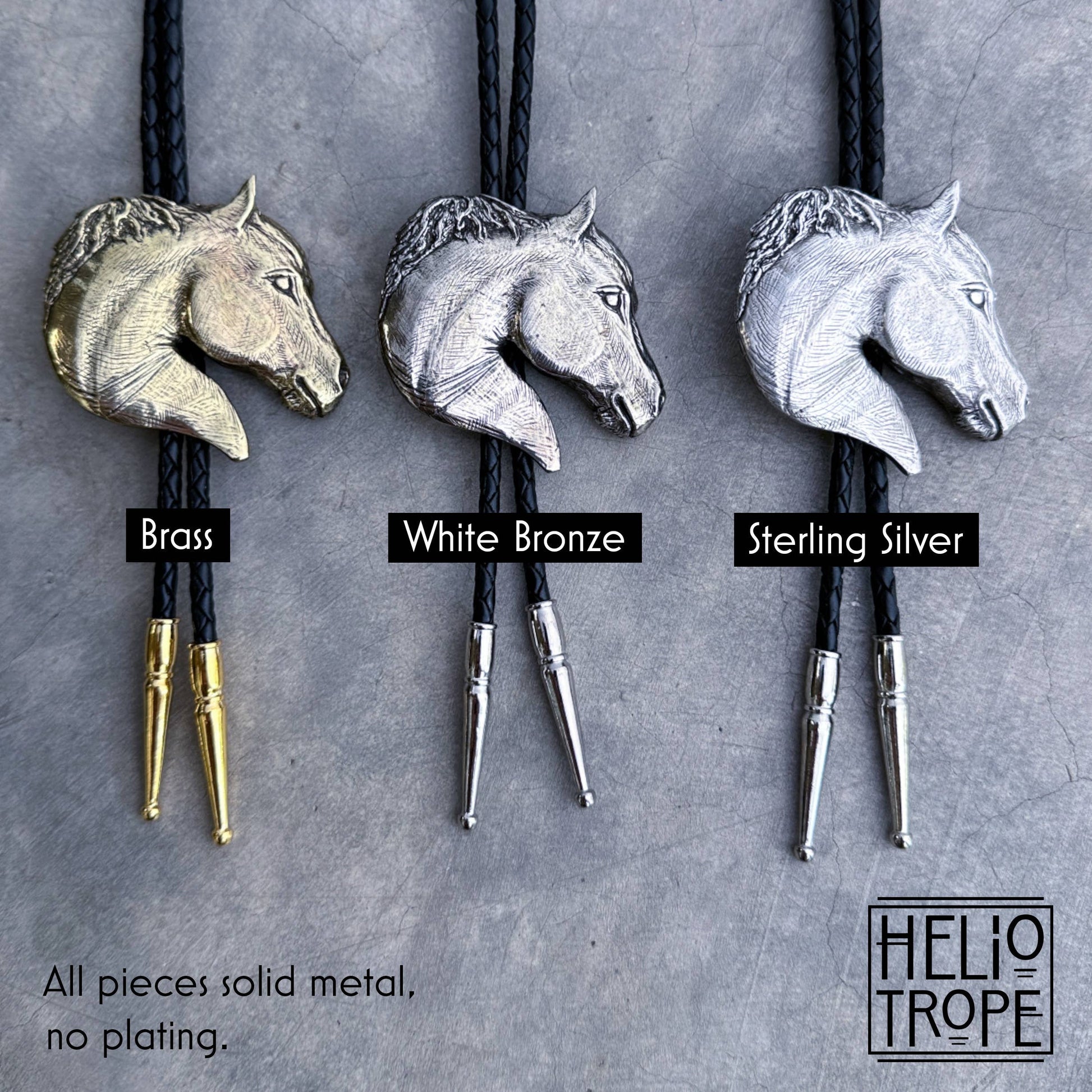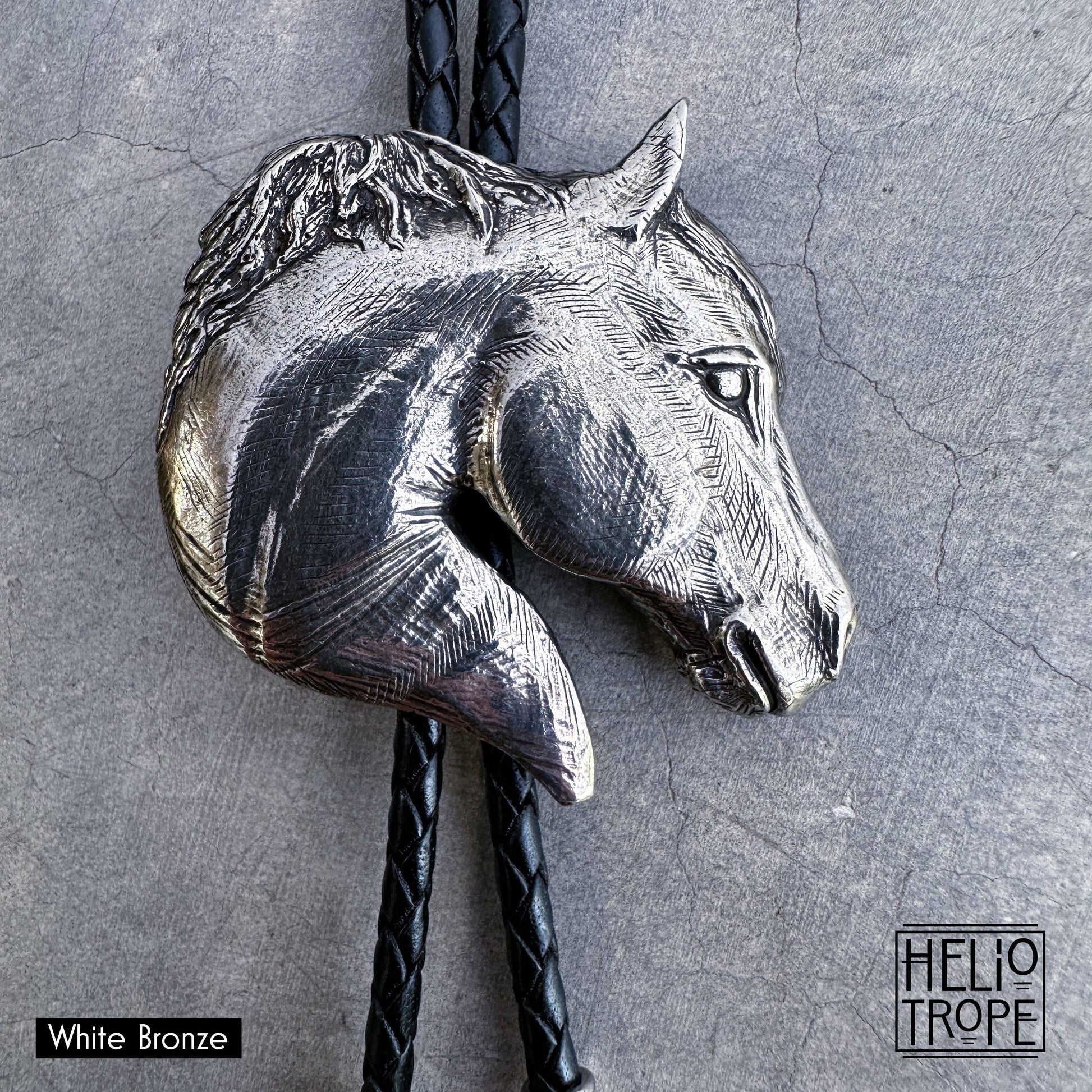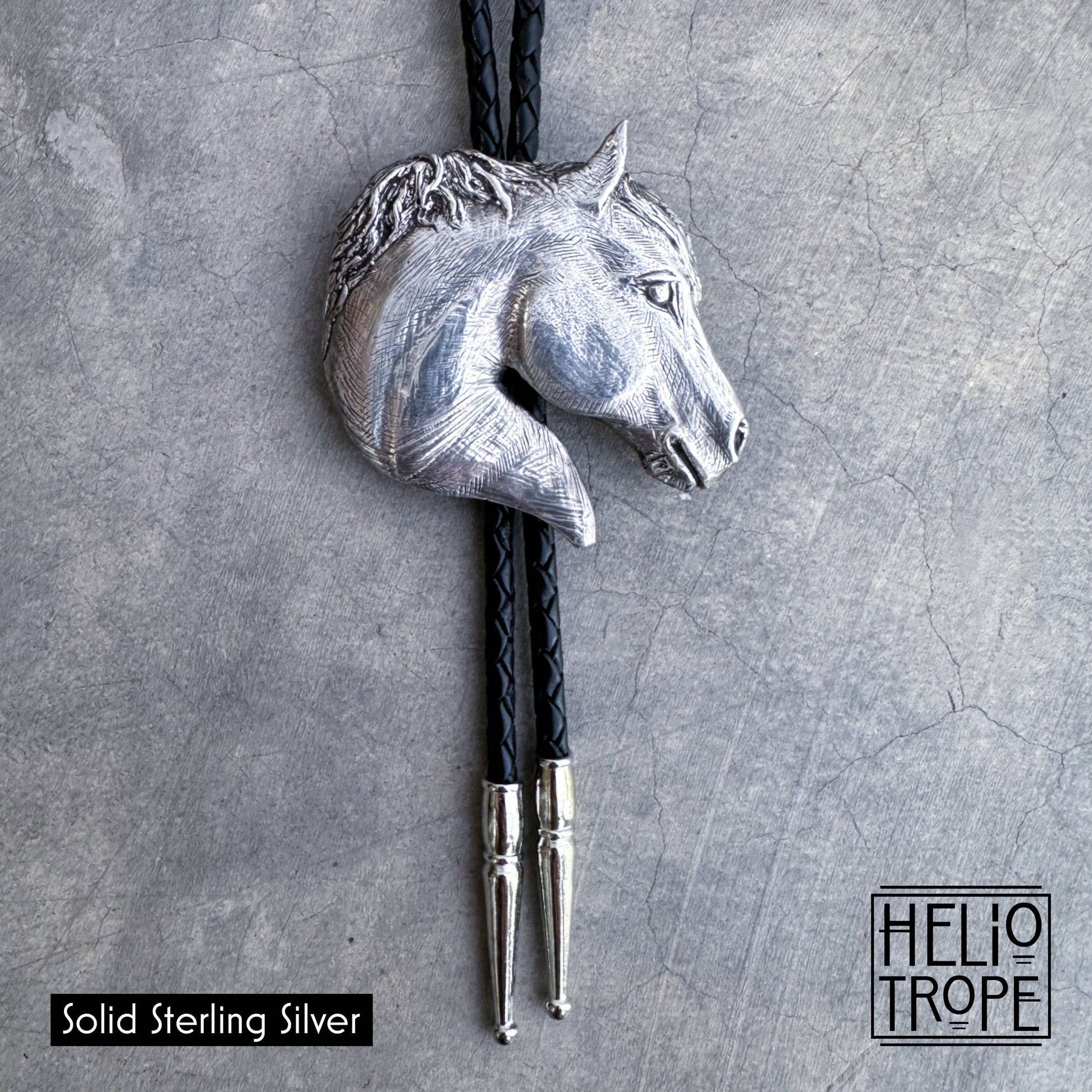 The Heliotrope Horse Bolo Tie is the definitive take on the Western classic. Drawing on her training as a printmaker, artist Spring Winders carved this piece from hard wax, bringing incredible detail and lifelike essence to this beloved and most-requested animal. While you can come across other equestrian bolo ties online, cheap factory-made bolos pale in comparison. This a hefty, handcrafted art piece that ties together an outfit, centered under a collar or even resting on skin. Compliments ensue.