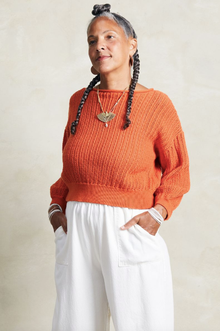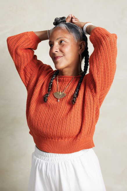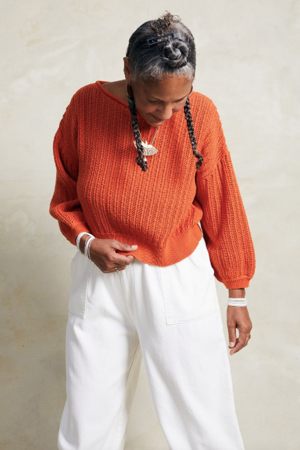 The Lana sweater features a delicate lace knit design with subtly ballooned sleeves, embodying both ease and elegance. Crafted from our signature cotton yarn, this open-weave piece is airy and perfect for transitioning between seasons. It’s a go-to choice for when you want to feel elevated yet comfortable—a charming addition to your wardrobe, ideal for dinner outings or cozy Netflix nights.