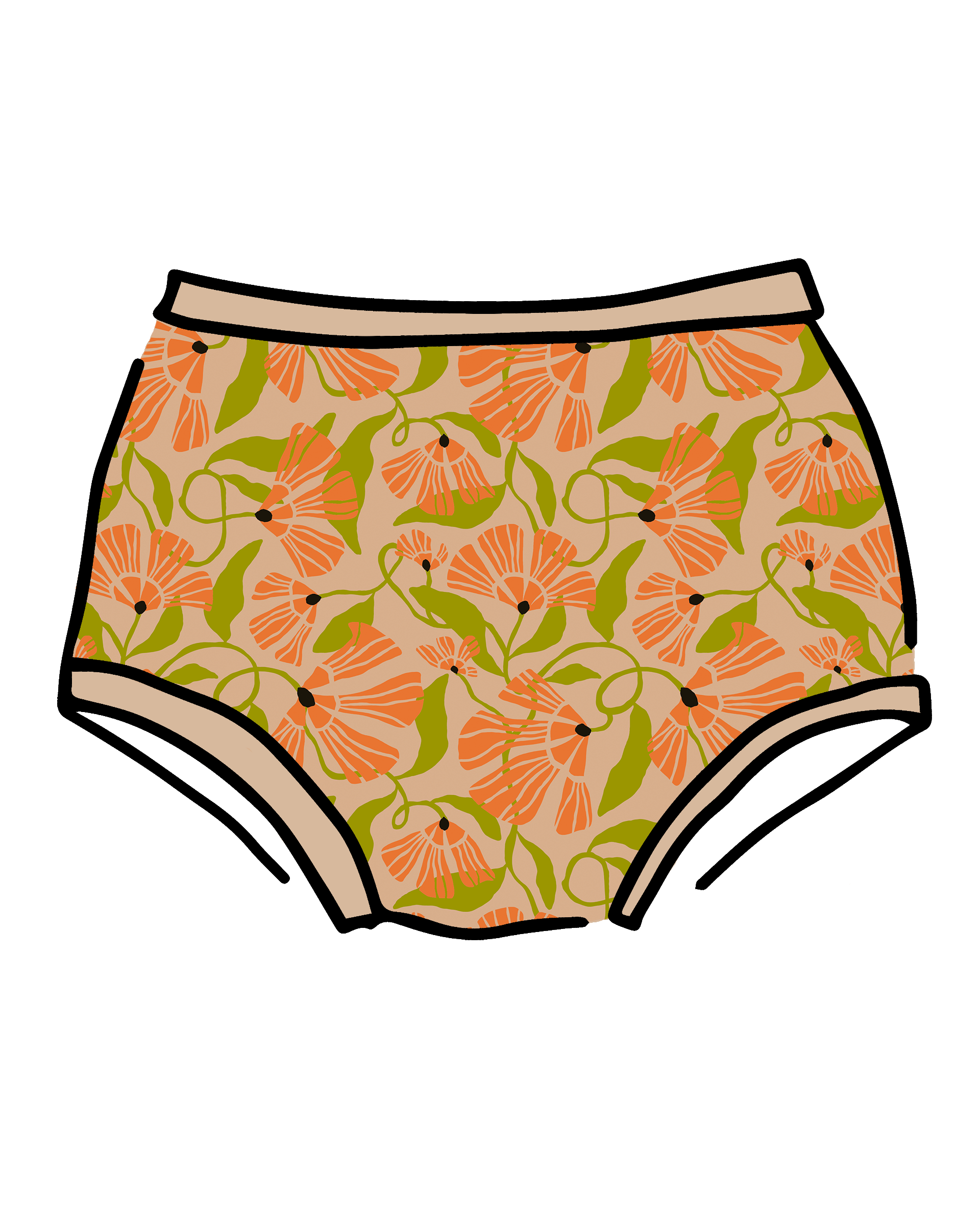 Step into your own secret garden - it's a lovely way to start the day! Designed by local illustrator Anna Trella Ruth Miller, this floral are printed on Pine Nut in a mid-century inspired soft orange and pea green with little black accents. Michaila is wearing a size XL Original